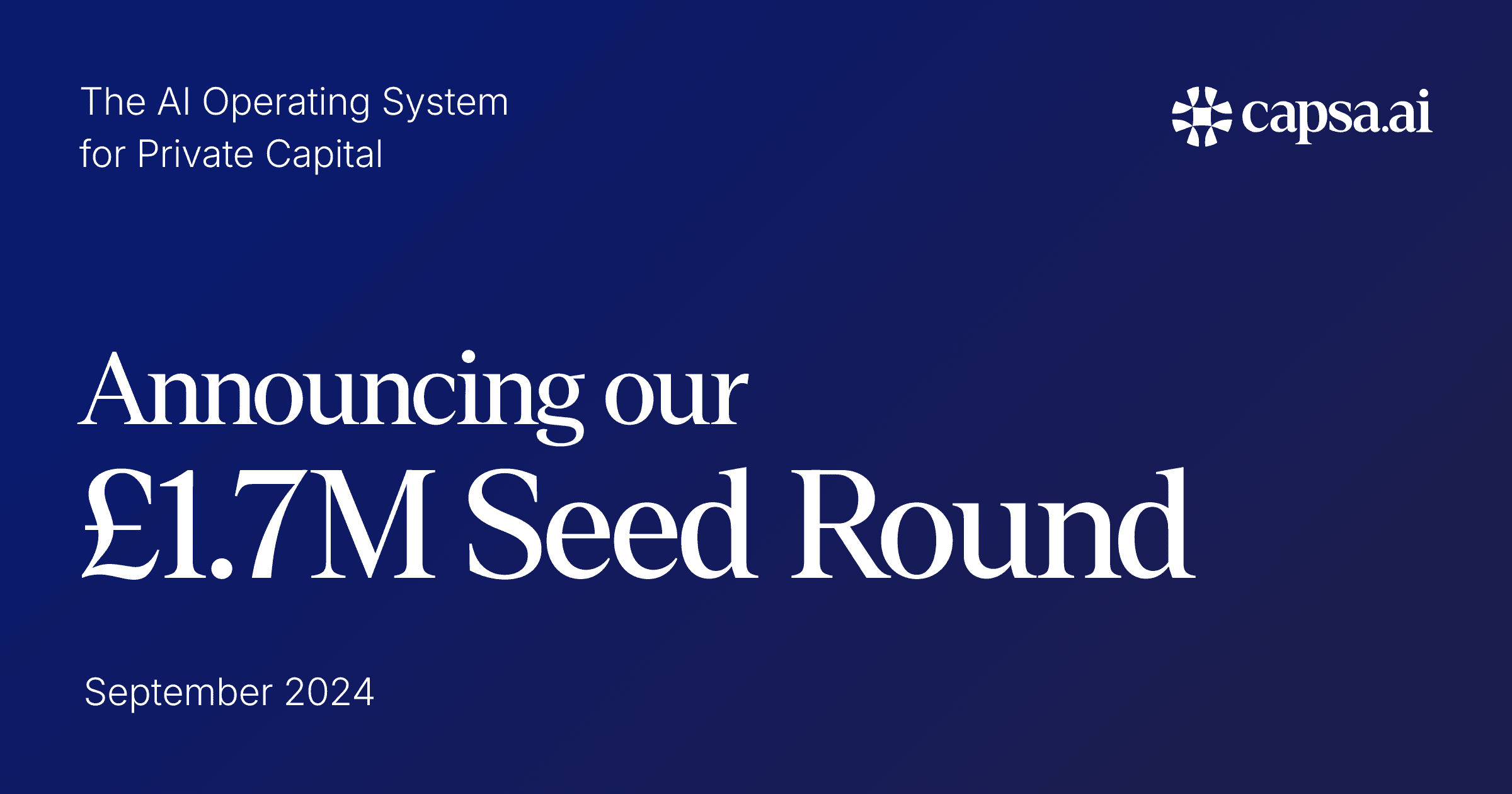 Eight months after founding, Capsa AI has successfully closed a £1.7 million seed round led by Outward VC. In that short time, we've built a revenue-generating platform serving top private equity funds managing over $30 billion across the US, UK, and Germany.
